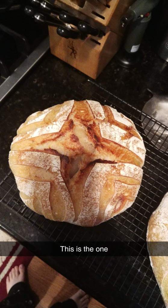 I’ve been spending a lot of quarantine making bread. The go to has been sourdough. Sourdough is a good option because it uses natural leavening instead of a mass produced one. This is good because everyone else bought all the yeast i would normally use to make bread. The ability to make leavening from wild yeast makes sourdough a good option for times like these. I’ve been using Alex the french bread guy’s videos from youtube to learn to make the starter and the bread. Here’s a picture of the best loaf i’ve made so far, this was attempt number 10.